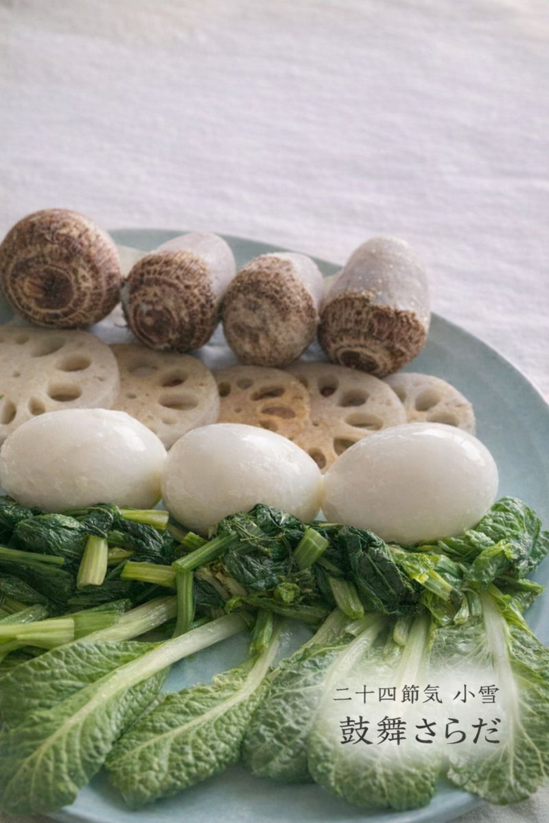 鼓舞さらだ ver.小雪 からだを温め、静かに力を蓄える鼓舞さらだ。 きぬかつぎ 焼き...