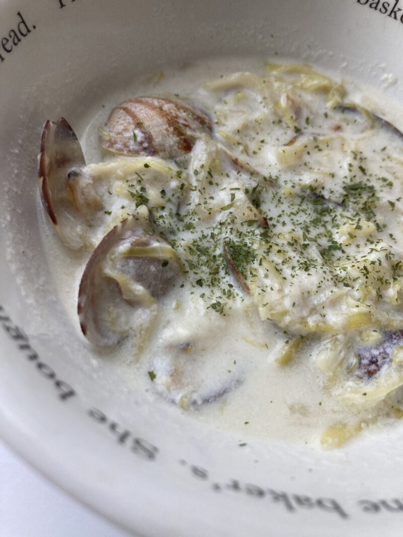 千切りキャベツとアサリのミルクスープ 材料 千切りキャベツどんぶりに一杯ほど 冷凍アサリ一袋 ...