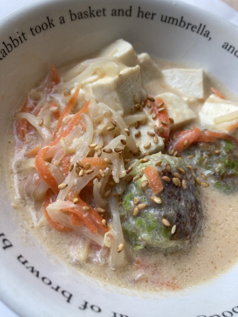 デモで仕上げた餃子の中身 餃子に仕上げてもよかったのだけれど お団子にして豆乳スープに入れました...