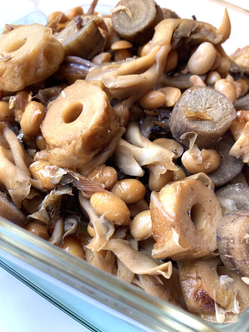 大豆とちくわとごぼうの煮もの 材料とした処理 茹で大豆150g ちくわ小3本1㎝に切り分ける ...