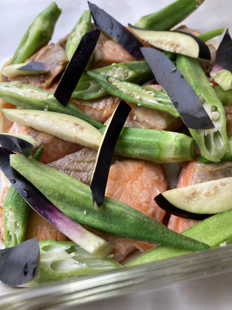 南蛮だれにすぐに漬け込み野菜を散らしました。