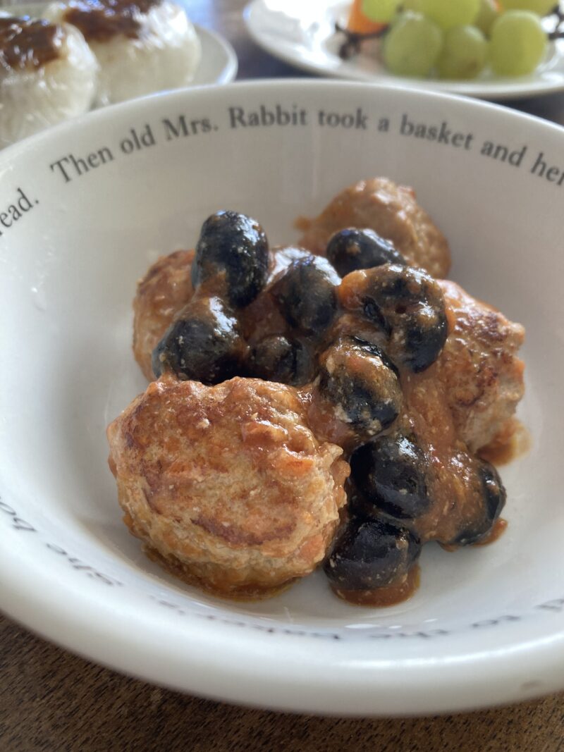 お正月の黒豆をつかって 肉団子甘酢餡