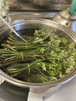 ゆでたわらびを加えました。