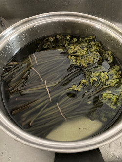 お湯を80℃にしてわらびを沈め