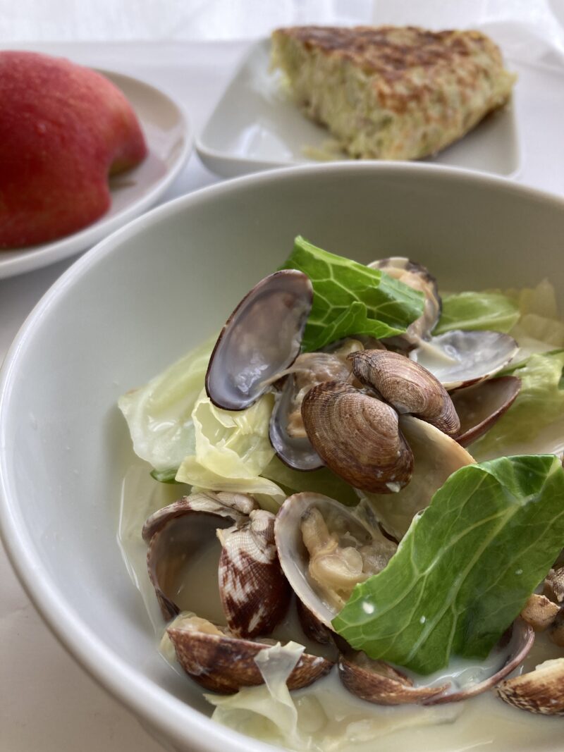 アサリときゃべつの豆乳汁
