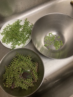 しその穂を枝からしごいて取り