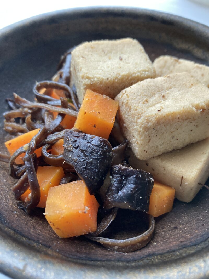 高野豆腐ときくらげ、しいたけ人参の煮物