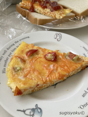 人参たっぷりオープンオムレツ、プチトマトはアクセントで