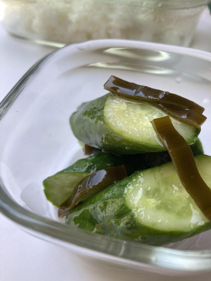 砂糖・酢をお好み量と切り分けた昆布を入れ更に重しをし