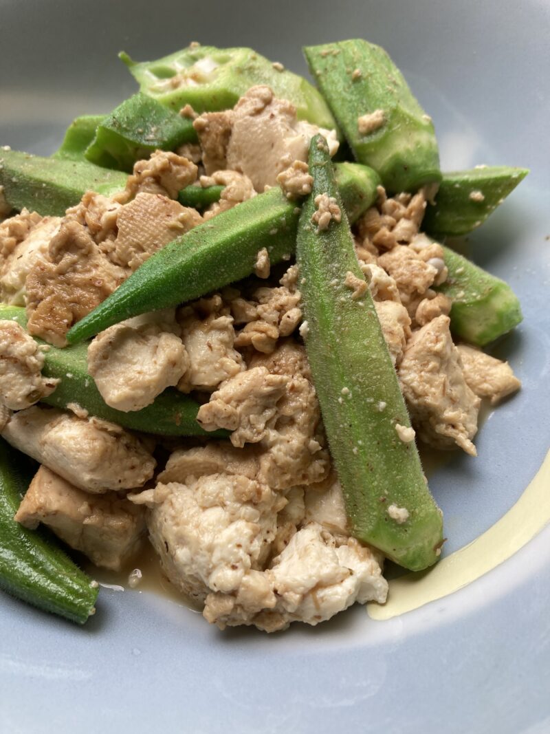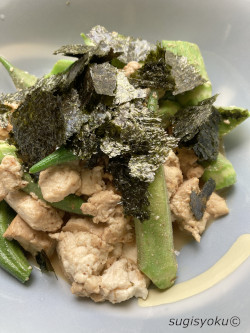 鍋にごま油を熱し、豆腐を手でちぎりながら入れ