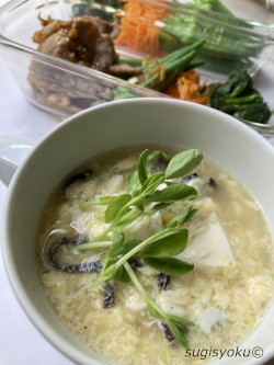 絹ごし豆腐と卵ときくらげのスープと一緒に