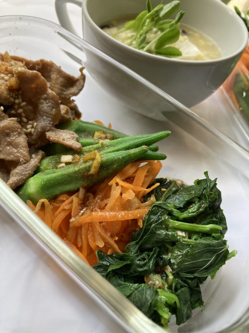 茹でた野菜にはナムルダレをかけまわして