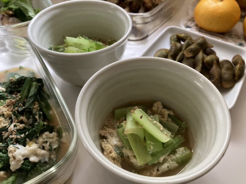 小松菜の卵とじ 葉と軸にわけて、、 / パソコン復活!