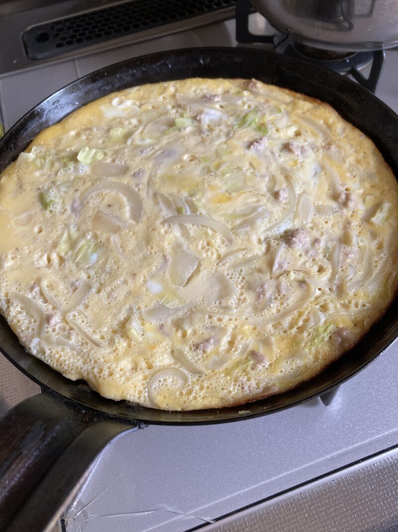 透明感が出てきたら山椒醤油を加えしばらく炒め