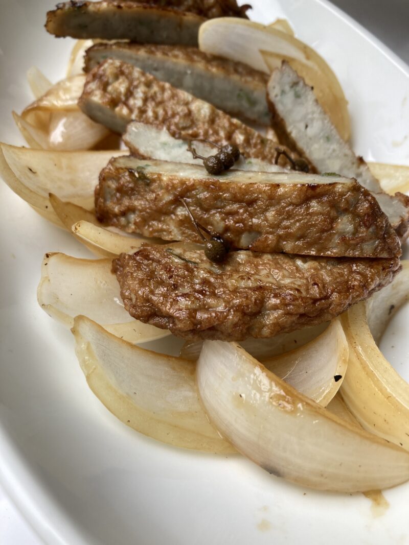 新玉ねぎとさつま揚げの山椒醤油炒め