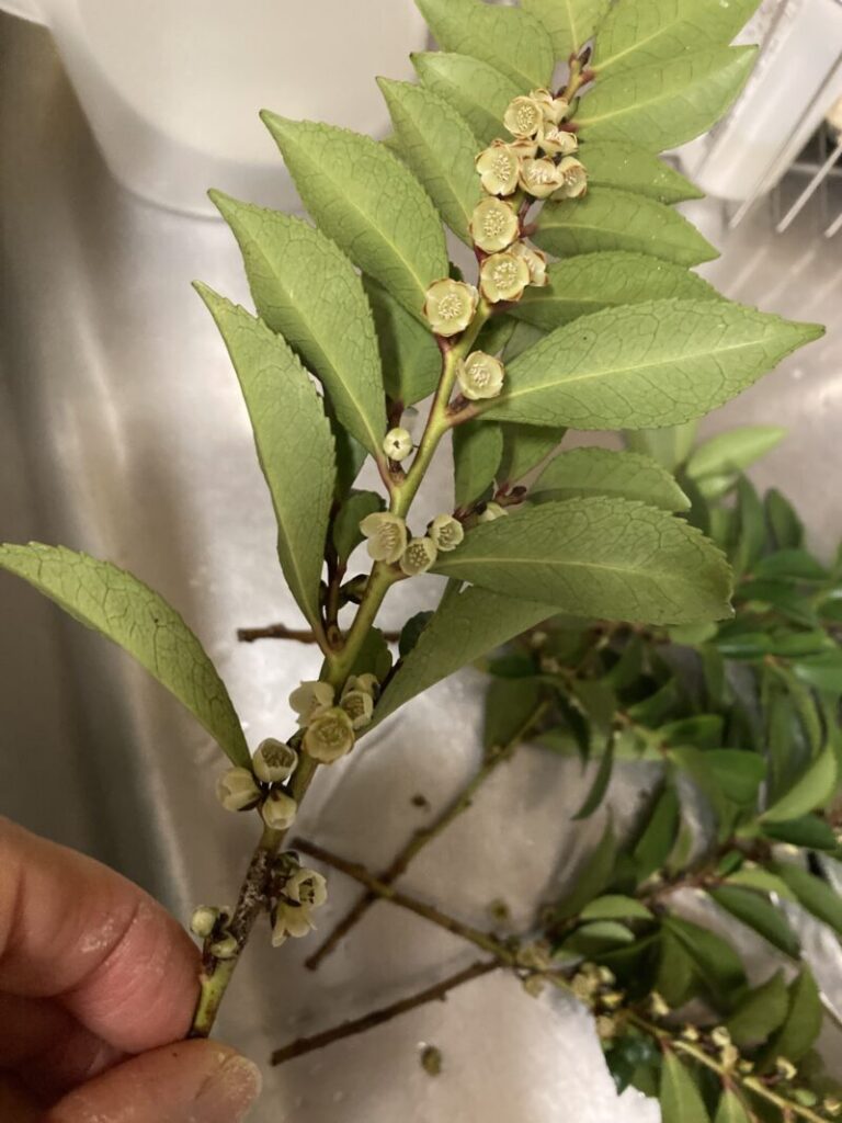 葉の裏側にお花が咲くなんて