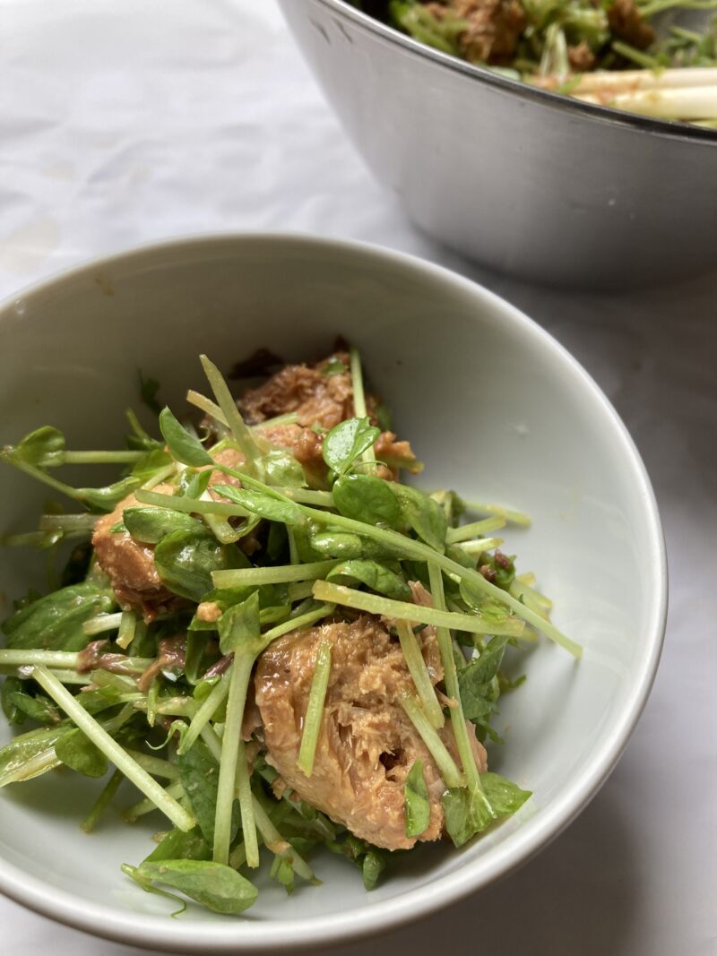 豆苗さば缶和え