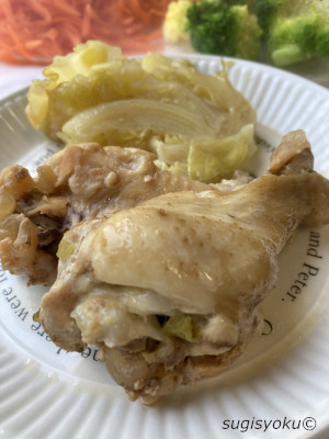 手羽元とキャベツの塩煮 材料 手羽元4本 キャベツ1/4(芯を付けた状態で4等分) 塩 にんにくスライス1枚 水適宜 作り方 手羽元は熱湯をかけまわし水気を拭いてから 水・ニンニクと共に圧力鍋に入れ火にかけ 10分程加圧 火を止めて自然放置して蓋を開けてからキャベツを入れて 加熱しました。 ちょっとバタバタしています。 流れに身を任せましょう。 モヤっとすることはスルーして。