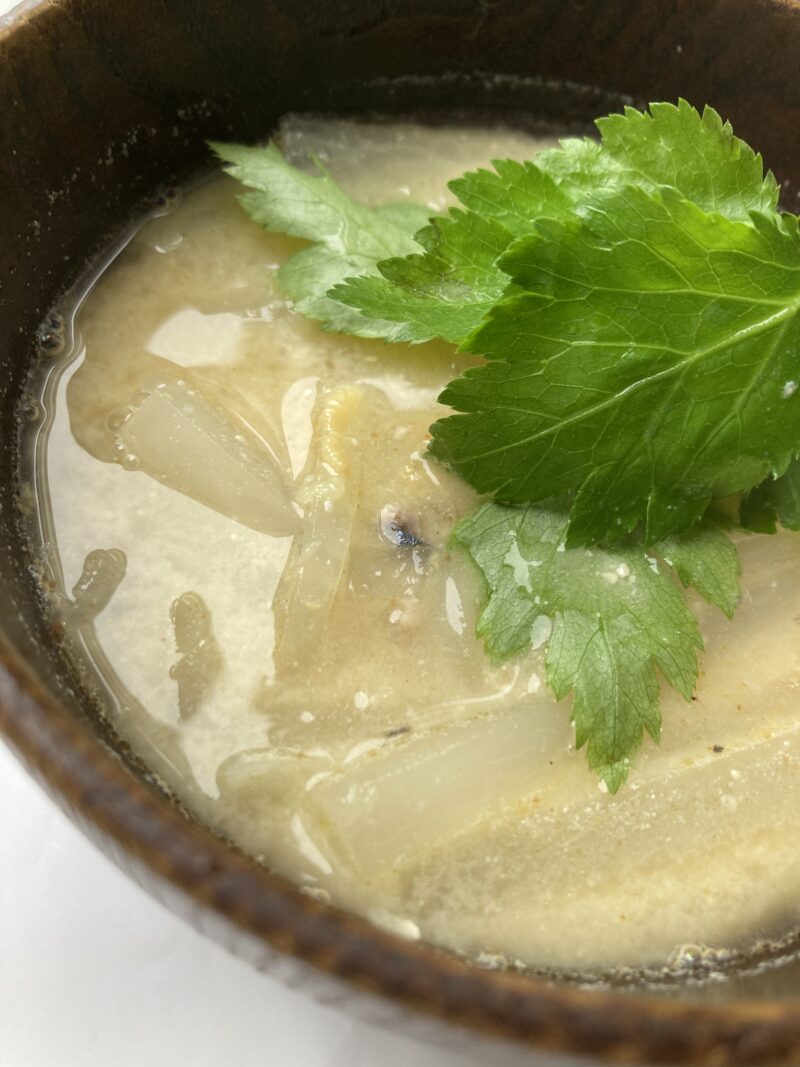 鯖缶の煮汁で味噌汁